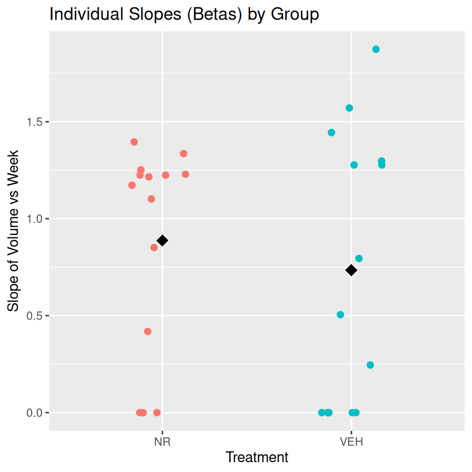 example <- rfeat(data = breast, id = "ID", time = "Week", measure = "Volume", group = "Treatment", comparison = "t.test") plot(example)